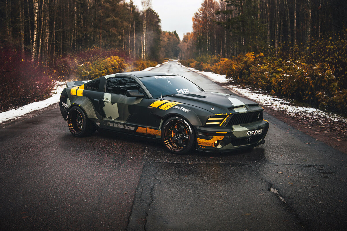 Today we will talk about one of the most famous Saint-Petersburg cars. Why it is so famous one must ask? Well, the owner of the car is the guy behind Evil Empire brand, also he is the one, responsible for most automotive shows, such as Royal Auto Show and others. His name is Ishan and this is his 400 HP Ford Mustang Shelby GT350 with a V8 under the hood, more known as the Evil Mustang.
